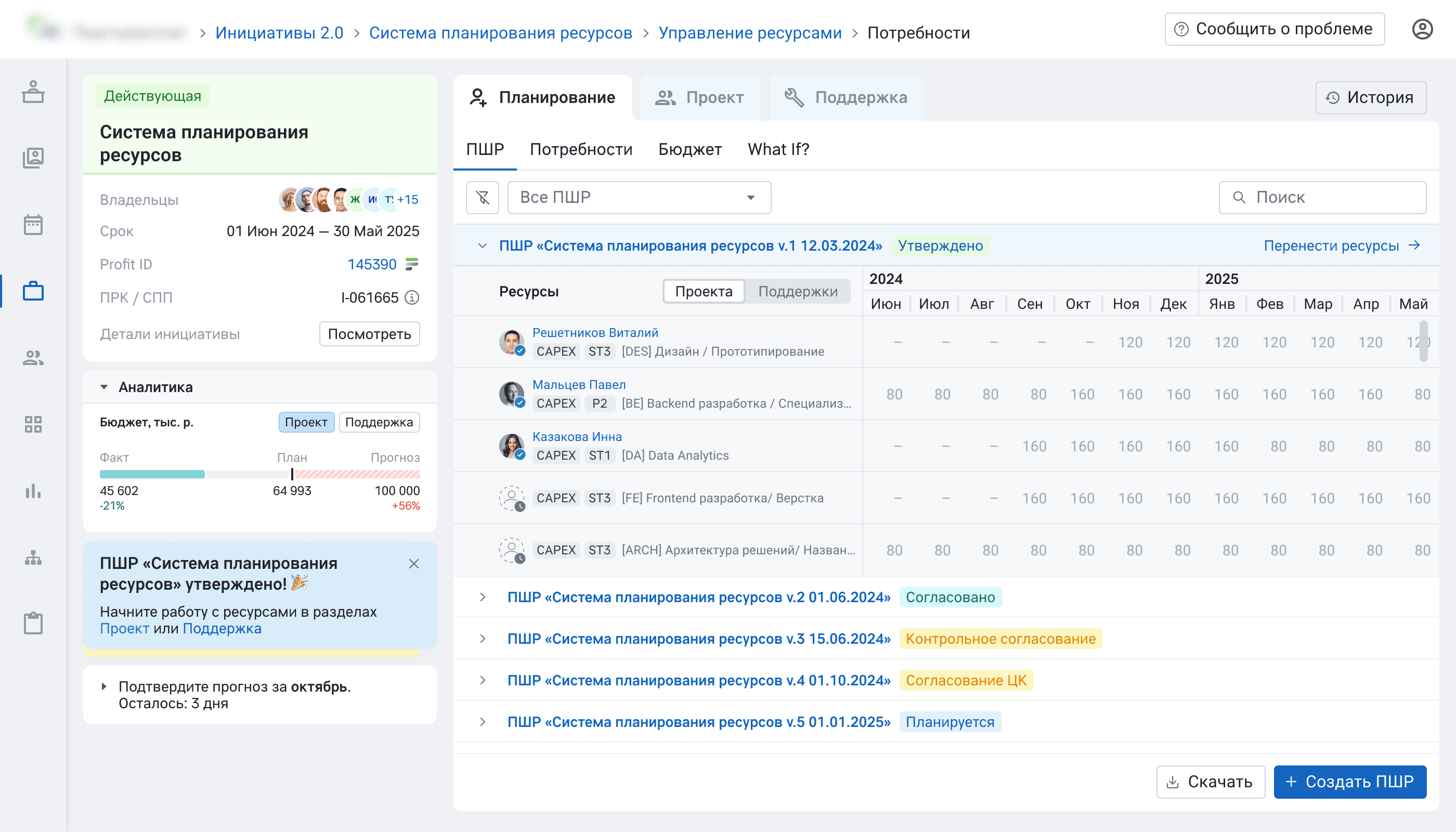 Internal platform for a large retail enterprise, automating how IT teams plan staffing and get budgets approved. Covers the full cycle from team cost calculation to multi-department sign-off.