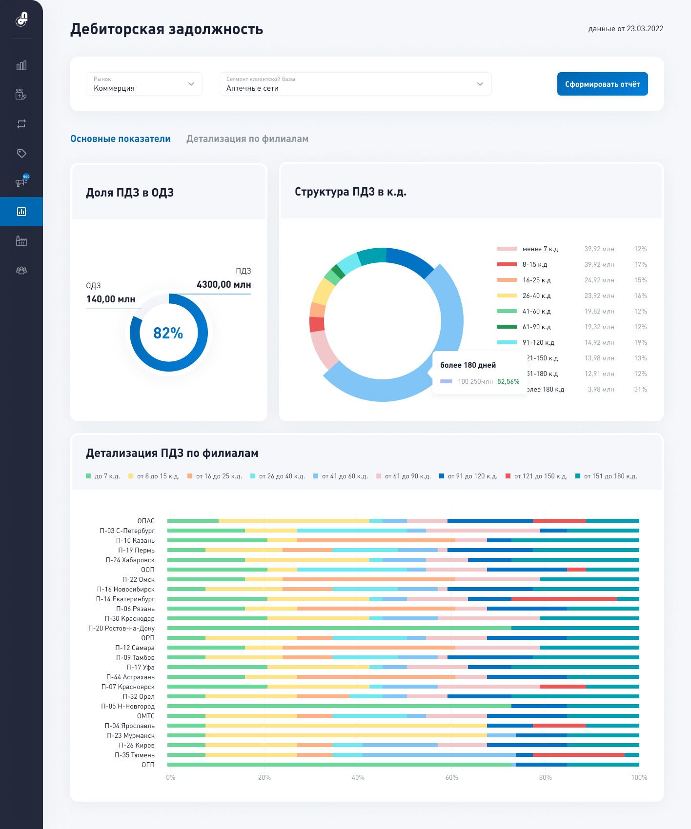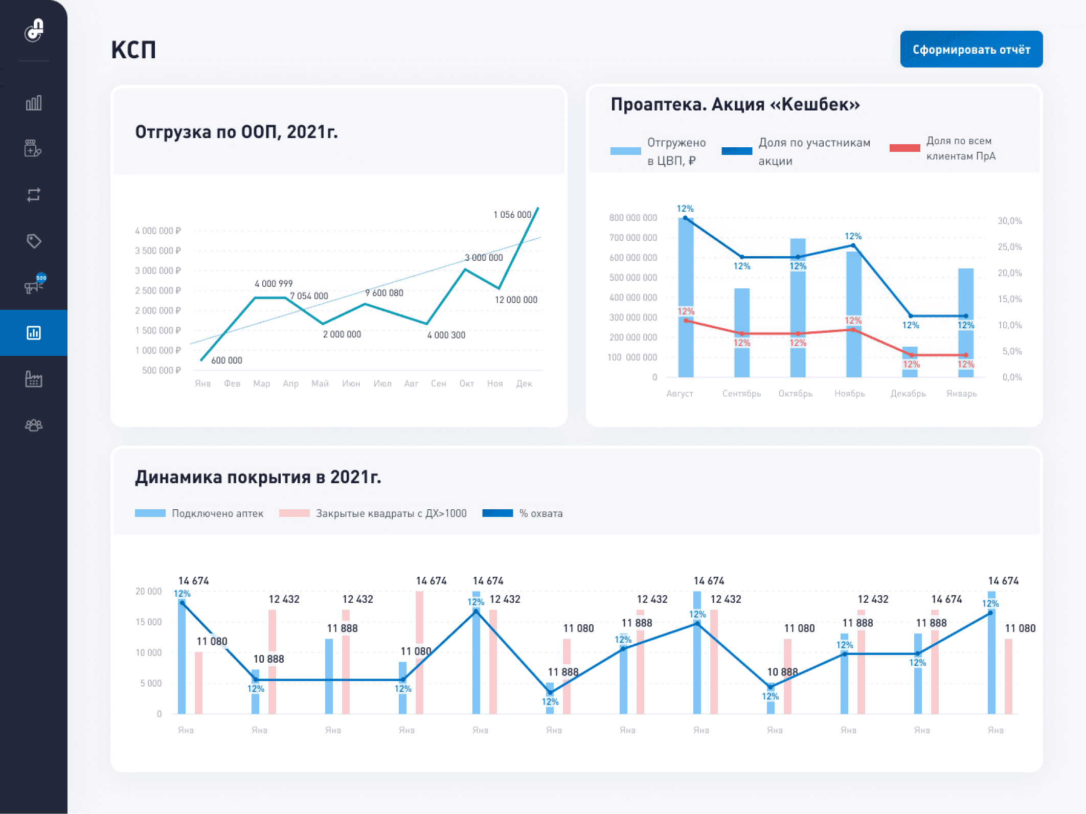 Internal platform for one of Russia's largest pharma companies, unifying performance monitoring and task management across divisions. Metrics link directly to automated tasks and alerts for faster response.