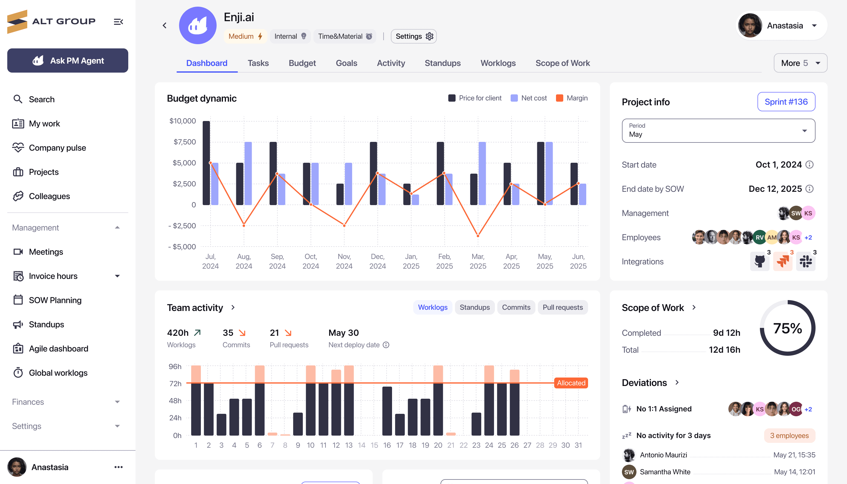AI-powered platform for remote team analytics and project management. Redesigned core product experiences — dashboards, AI agent, and design system — to turn operational data into decisions.