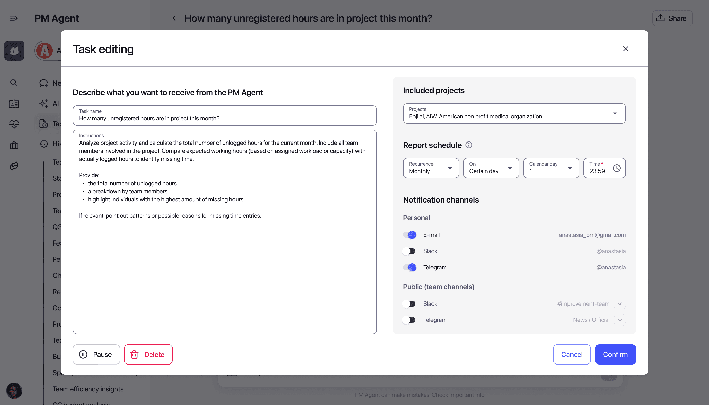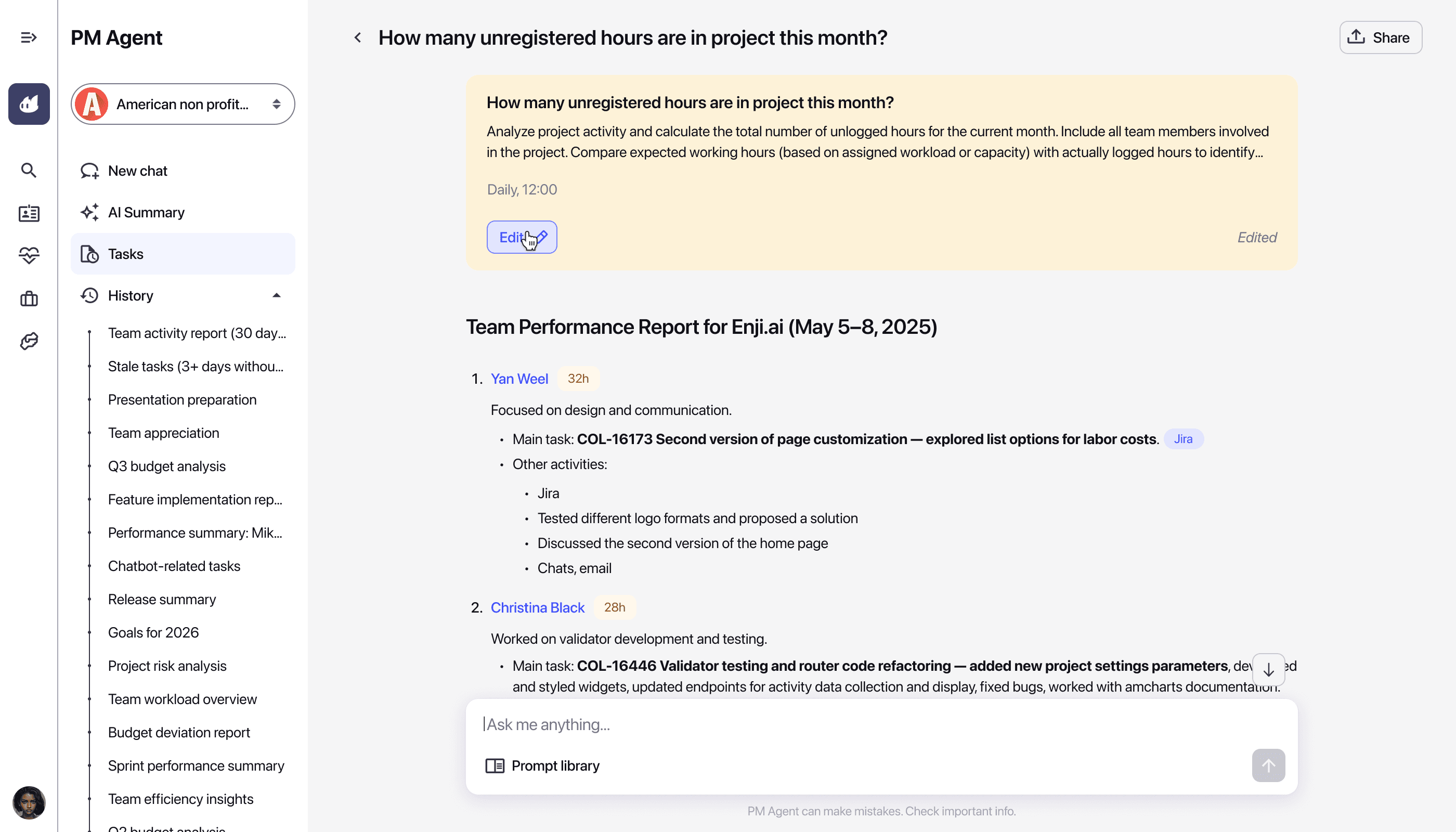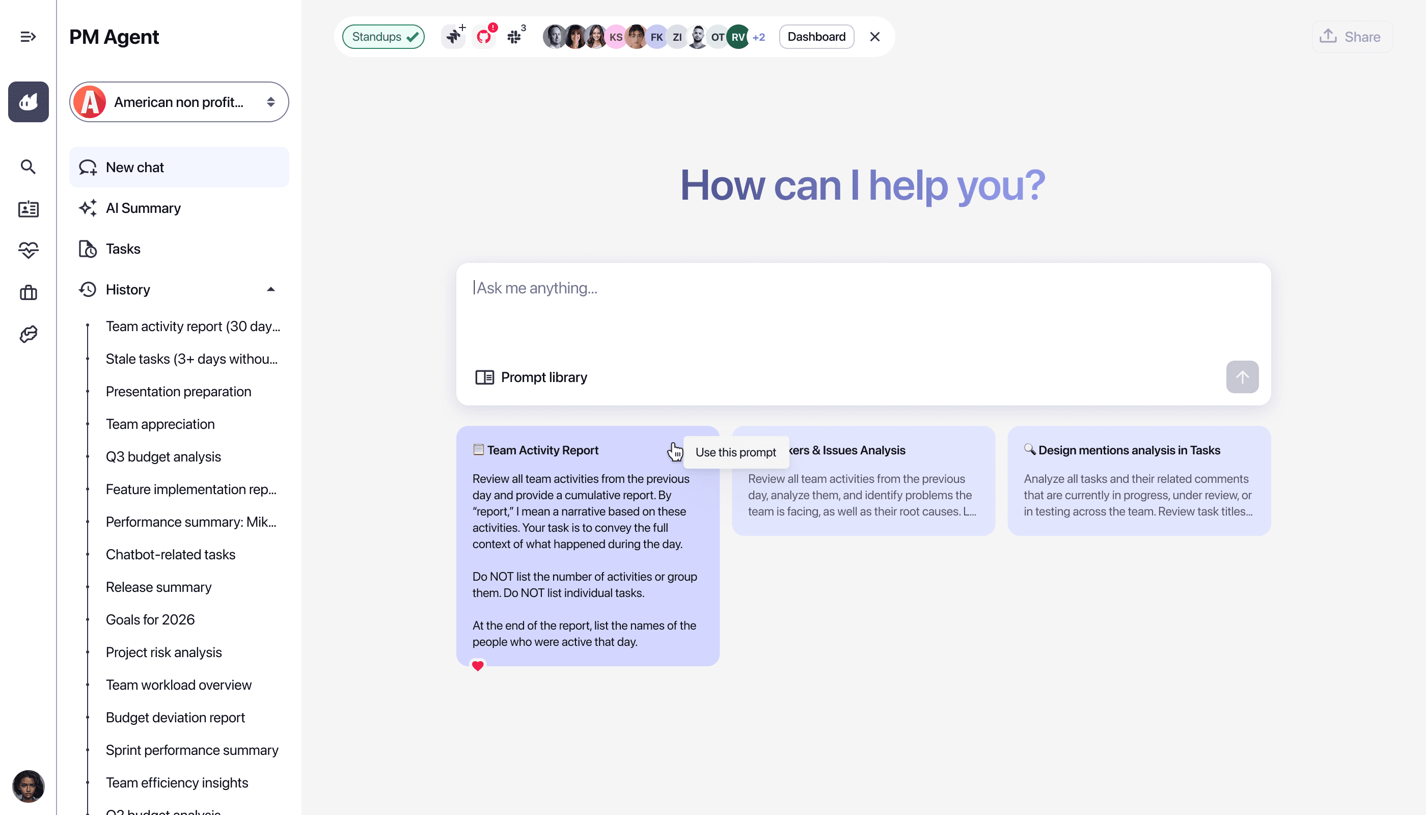 A delivery intelligence platform for remote and hybrid teams. Combines AI agent, real-time dashboards, and cost transparency to turn raw project data into actionable decisions — without manual reporting or excessive meetings.
